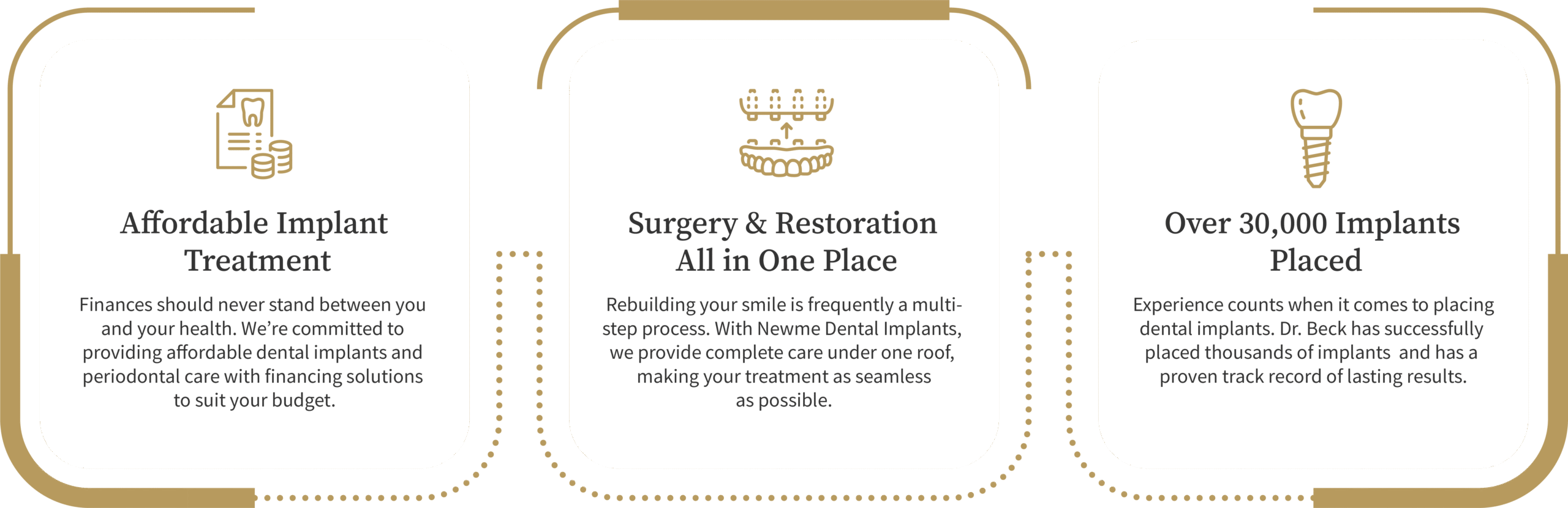 Rebuilding your smile is frequently a multi-step process. With Newme Dental Implants, we provide complete care under one roof, making your treatment as seamless as possible.